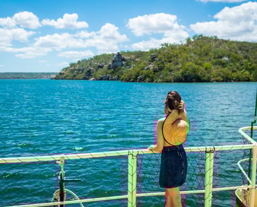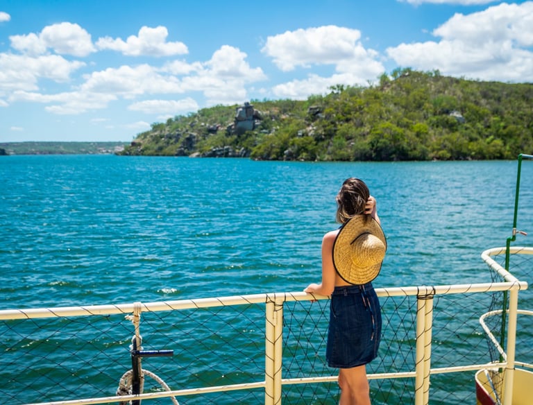 Uma experiência imperdível! Atravessando o agreste de Sergipe, chegaremos à cidade de Canindé do São Francisco, a 213 km da capital. Nosso ponto de apoio é no restaurante Karrancas (local onde o Digital Influencer Carlinhos Maia se casou), lá embarcamos no catamarã e navegaremos por entre as rochas dessa gigantesca muralha encravada no meio do Alto Sertão de Sergipe com seus vales grandiosos, formando um Cânion de até 50 metros de altura.